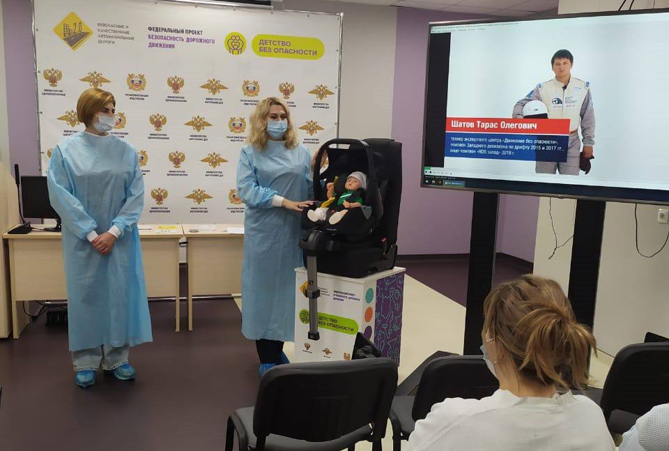 В рамках реализации федерального проекта «Безопасность дорожного движения», национального проекта «Инфраструктура для жизни» в 2025 году на базе перинатального центра «Мама» города Ульяновска проходят обучающие тренинги по безопасной перевозке детей - пассажиров, в которых принимают участие беременные женщины.