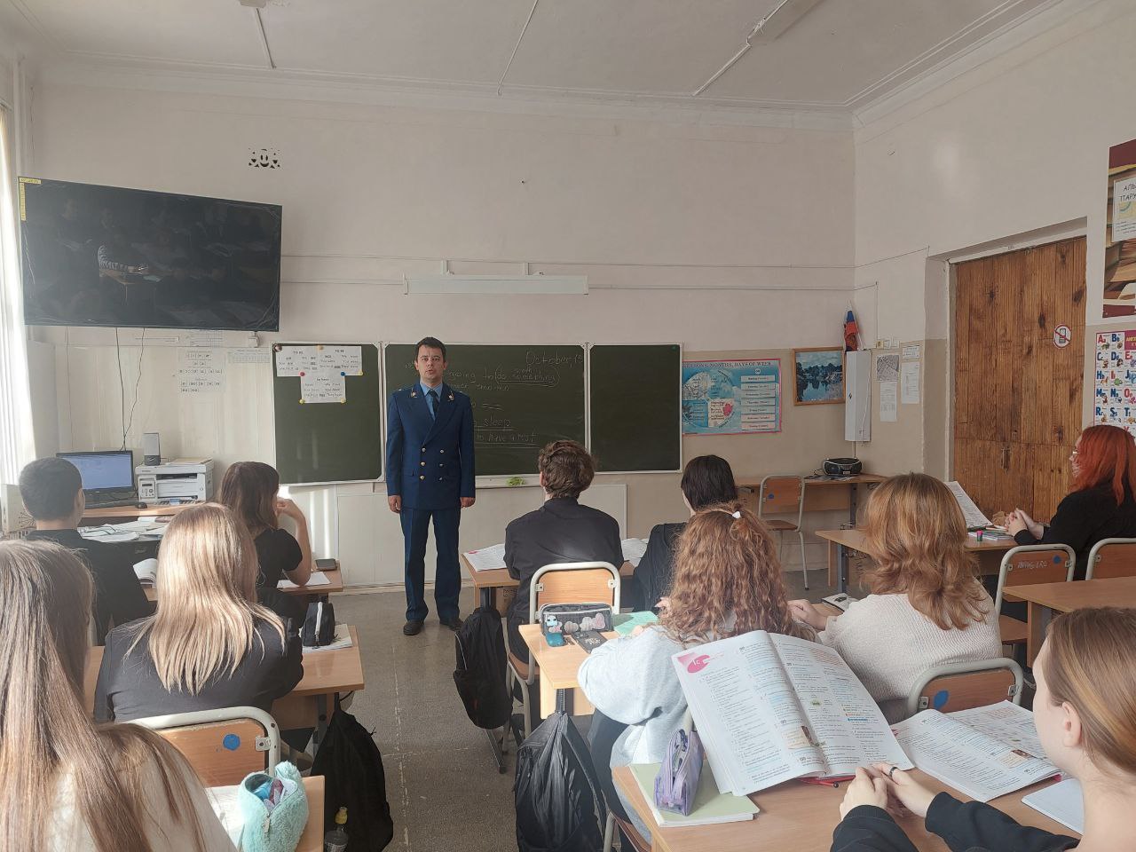 Старший помощник прокурора района также ответил на многочисленные вопросы обучающихся, приведя примеры из надзорной практики.