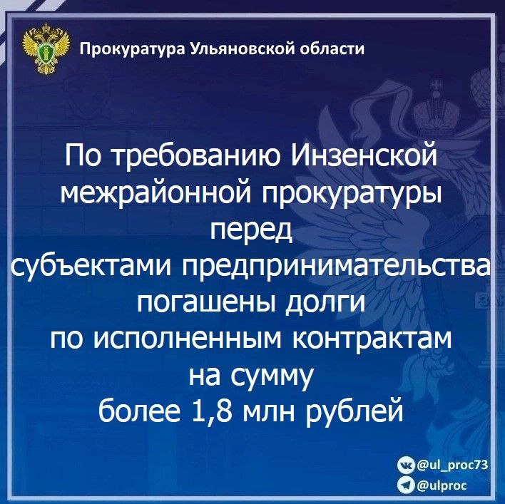 Инзенская межрайонная прокуратура Ульяновской области провела проверку исполнения законодательства в части своевременной оплаты заказчиками обязательств по государственным контрактам.