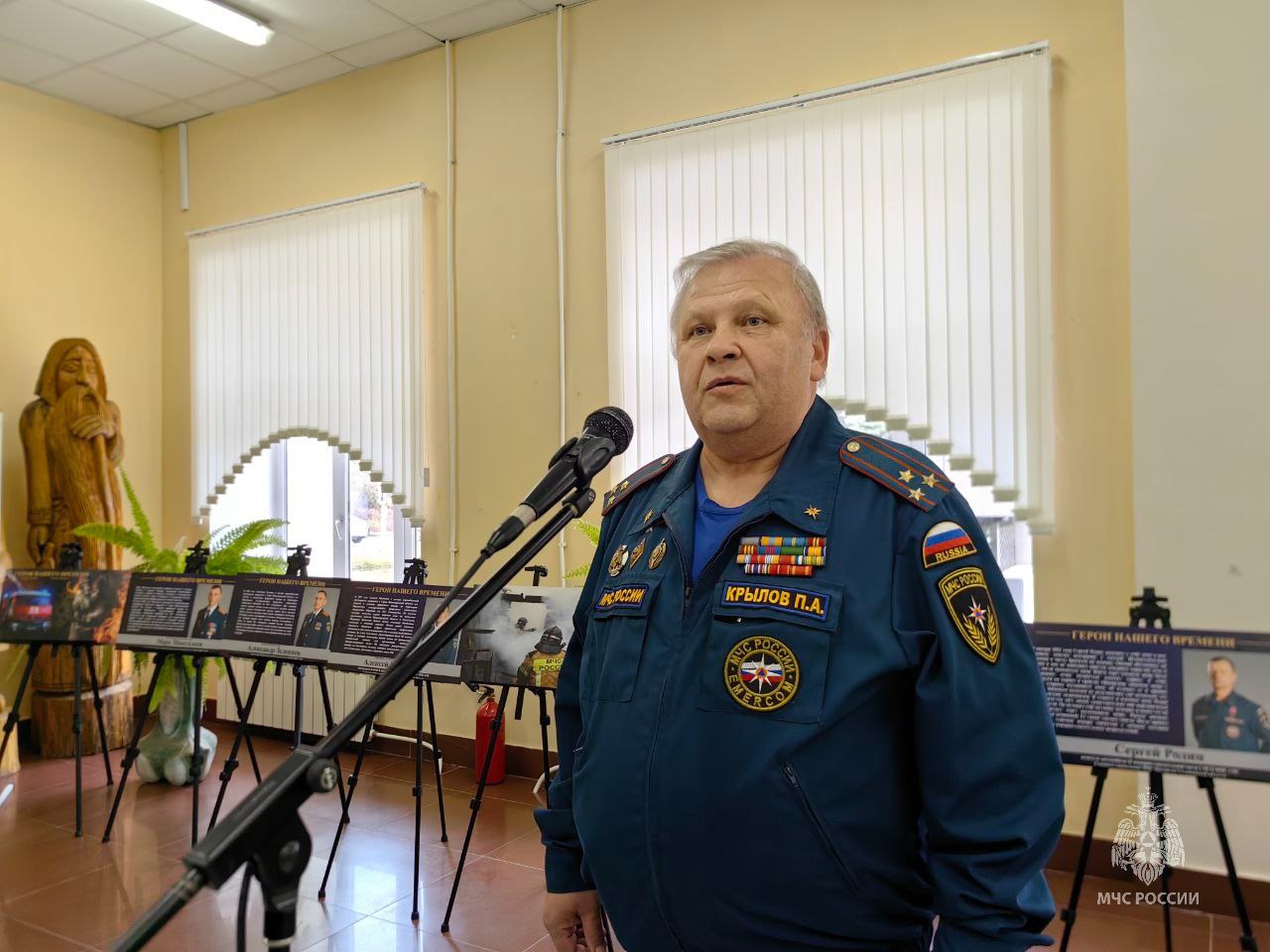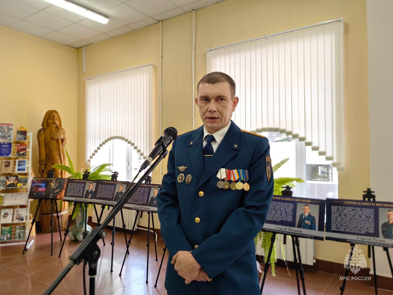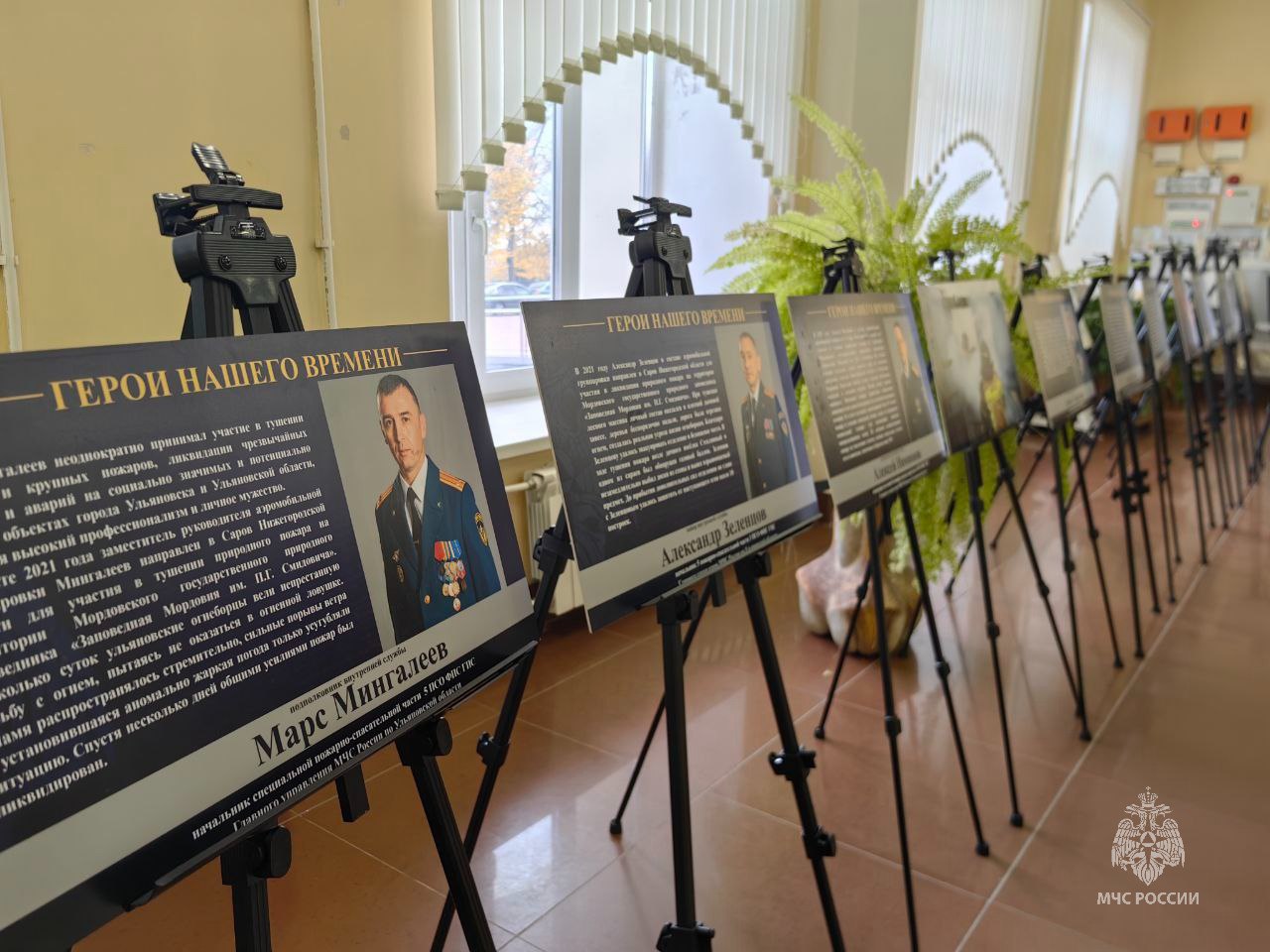 В рамках Года защитника Отечества в Ульяновской областной научной библиотеке открылась выставка «Герои нашего времени». На больших постерах — портреты сотрудников регионального МЧС, удостоенных государственных наград.