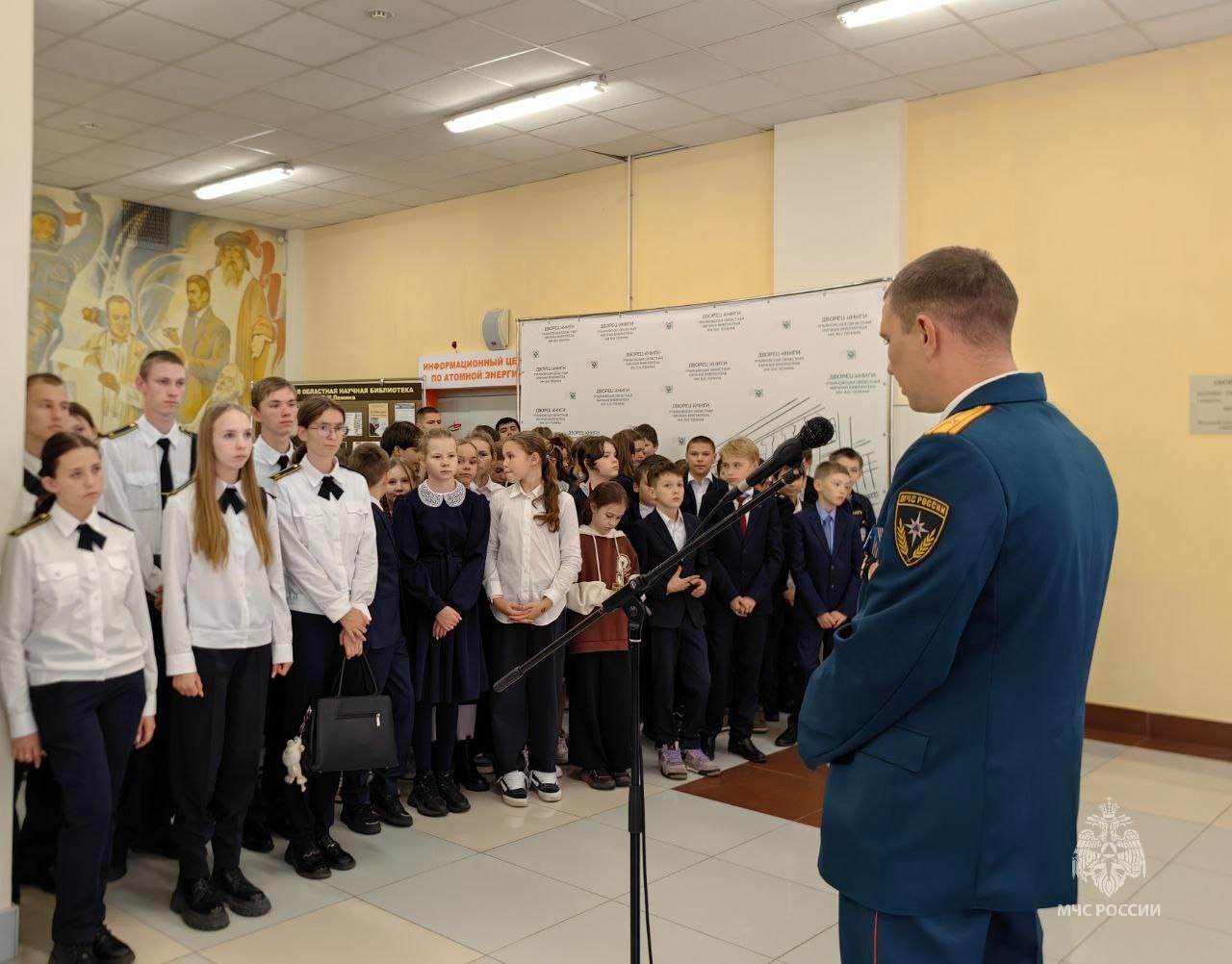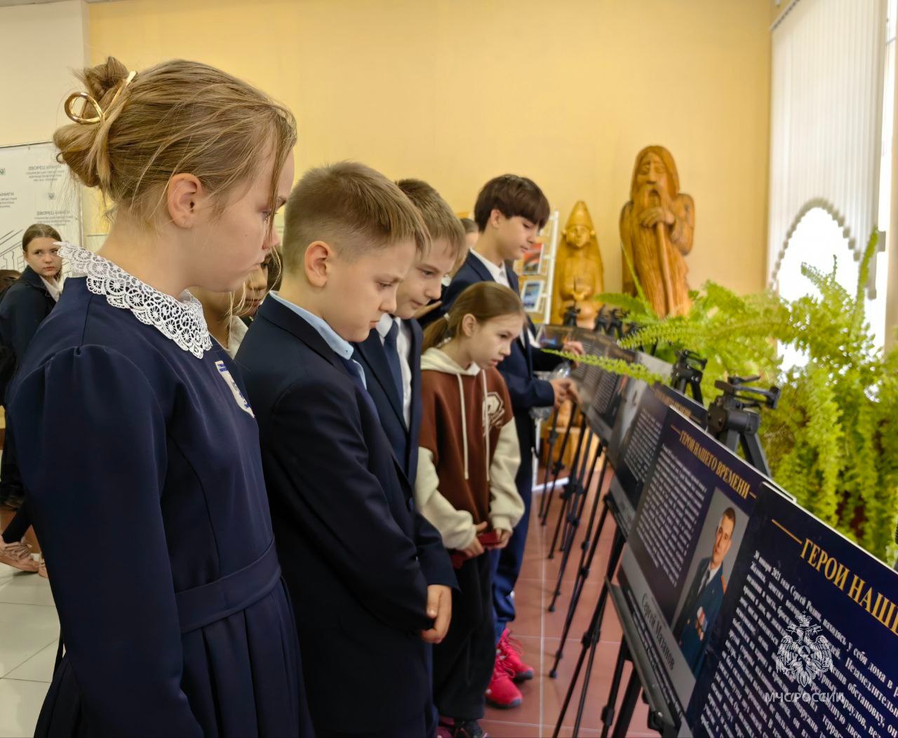 На открытие выставки были приглашены пятиклассники Гимназии №1, учащиеся пожарно-спасательных классов школы № 7 им. В. В. Кашкадамовой, курсанты Колледжа государственной и муниципальной службы, ветераны пожарной охраны и один из героев выставки — заместитель начальника службы пожаротушения регионального МЧС Сергей Мазанов. В беседе с гимназистами сотрудники ведомства рассказали, как неоднократно приходилось спасать людей, как вместе с товарищами выносили детей буквально из огня, как тушили пожары на огромных площадях после взрыва горючих емкостей. В завершении встречи ребятам напомнили основные правила пожарной безопасности в быту, которые необходимо соблюдать, чтобы предотвратить возникновение пожара, номера телефонов экстренных служб.