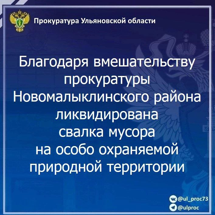 Прокуратура Новомалыклинского района Ульяновской области провела проверку исполнения законодательства об охране окружающей среды.