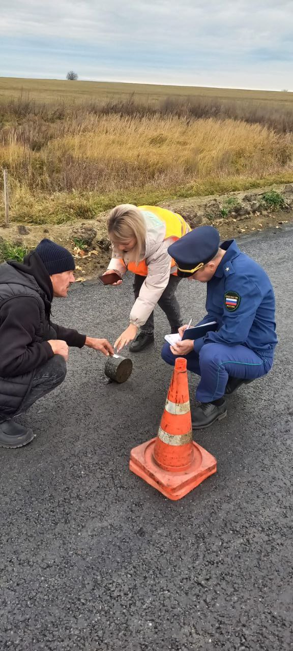 В частности, прокурор района Киселев М.С. оценивает качество ремонта дорожного полотна участка автомобильной дороги «Урено-Карлинское-Чуфарово-Вешкайма-Барыш» от села Степановка до села Попова Мельница.