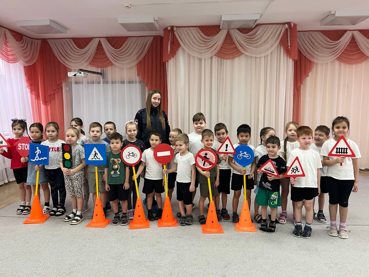 Во время практических занятий воспитанники детских садов изучили значения дорожных знаков и сигналов светофора, вспомнили правила поведения на парковках и местах скопления автомобилей. Инспекторы напомнили ребятам об обязательном использовании ремней безопасности в транспортных средствах.