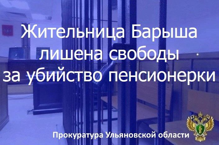 Барышский районный суд Ульяновской области вынес приговор по уголовному делу в отношении жительницы региона. Она признана виновной в совершении преступления по ч. 1 ст. 105 УК РФ (убийство).