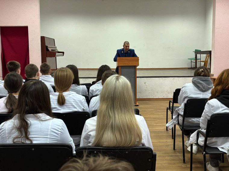 123 В рамках региональной Недели антикоррупционных инициатив старший помощник прокурора Карсунского района Козлов А.В. встретился со студентами ОГБПОУ «Карсунский медицинский техникум имени В.В. Тихомирова».