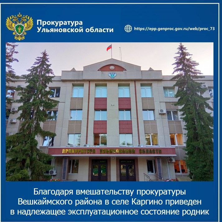 Прокуратура Вешкаймского района Ульяновской области провела проверку исполнения законодательства о водоснабжении.