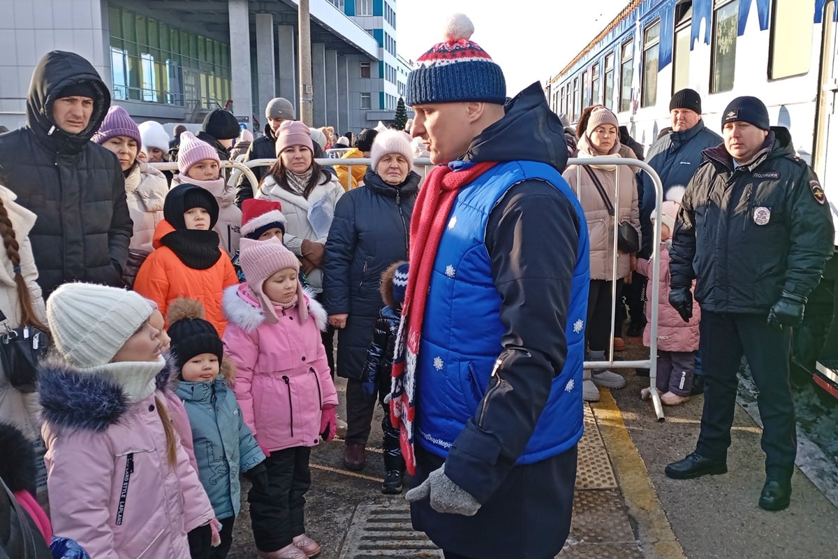 В ожидании «Поезда Деда Мороза» сотрудники отделения охраны общественного порядка Ульяновского ЛО МВД России на транспорте провели инструктаж для всех присутствующих в целях безопасности во время мероприятия.