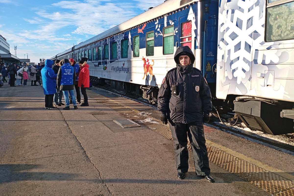 Транспортные полицейские Ульяновска обеспечили охрану общественного порядка во время прибытия поезда Деда Мороза
