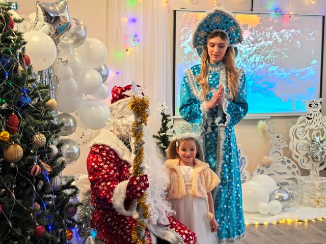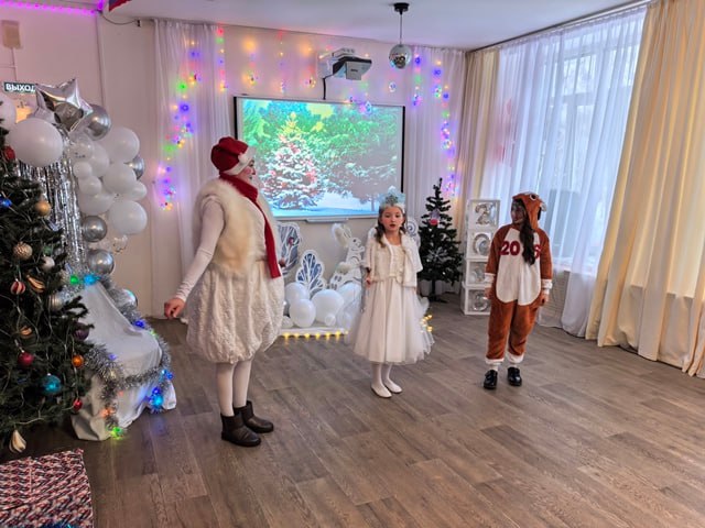 Праздник начался с веселого театрализованного новогоднего представления, в котором дети приняли активное участие, выступив с музыкальными номерами и прочитав стихи для Деда Мороза и Снегурочки.