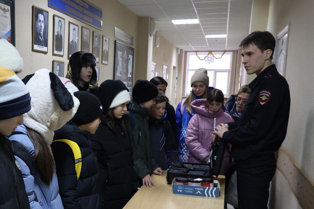 В рамках состоявшейся встречи сотрудники экспертно-криминалистического центра рассказали ребятам о различных видах криминалистических исследований, проводимых ими, и показали специальный чемодан, укомплектованный необходимым набором средств и инструментов, применяемых для фиксации и изъятия следов на месте происшествия.