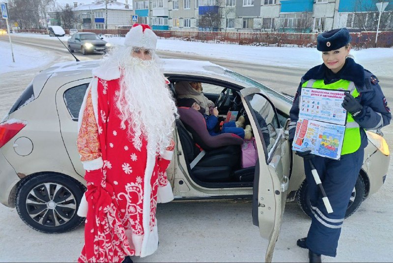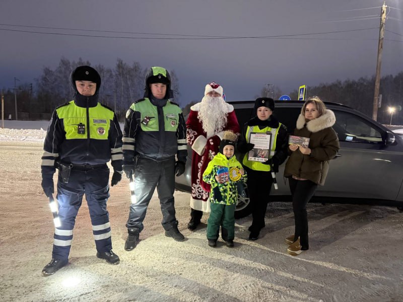 В ходе мероприятия полицейские осуществляли проверки автомобилей, перевозивших детей. Автоинспекторы обращали внимание на наличие в салонах автомобилей детских удерживающих устройств, проводили профилактические беседы, вручали водителям памятки и тематические листовки. А юных пассажиров встречал настоящий Полицейский Дед Мороз, который призвал ребят соблюдать Правила дорожного движения и подарил световозвращатели.
