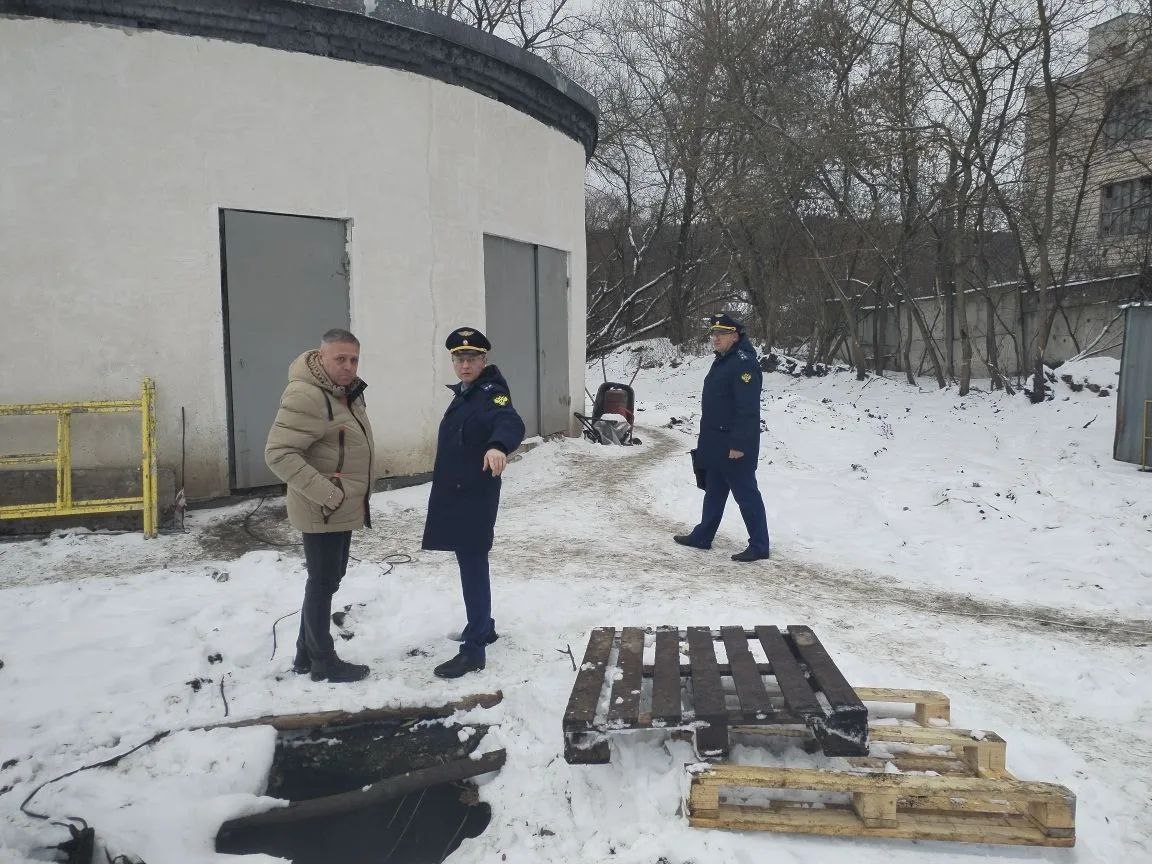 В частности, прокурор района Киселев М.С. и старший помощник прокурора района Колпиков И.В. изучают ход выполнения работ по реконструкции очистных сооружений и сетей канализации в городе Барыше.