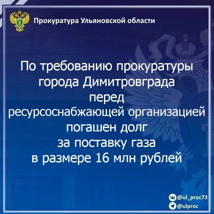 В результате прокурорского вмешательства задолженность за поставленные коммунальные ресурсы погашена в размере 16 млн рублей.
