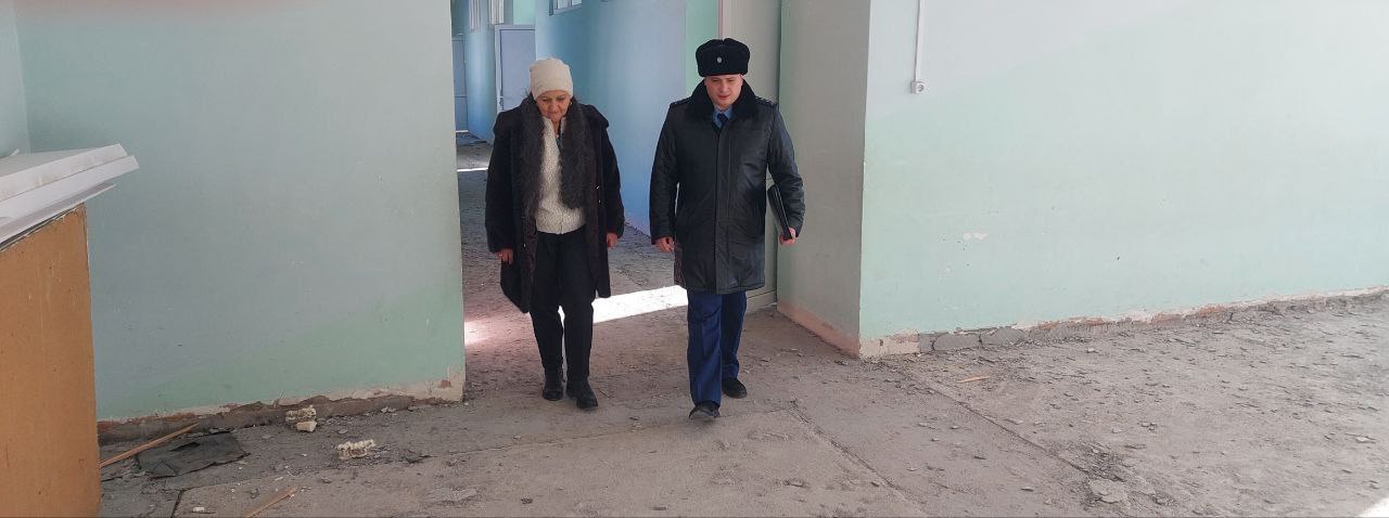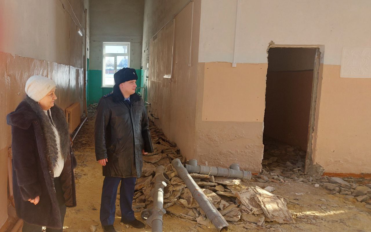 В частности, заместитель прокурора района Веткасов А.С. изучает ход капитального ремонта здания МОУ "Средняя общеобразовательная школа р.п. Старотимошкино".