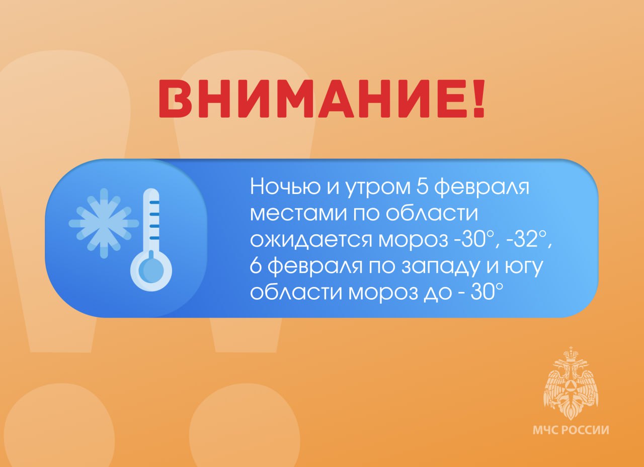ВНИМАНИЕ. Ночью и утром 5 февраля местами по области ожидается мороз -30°
