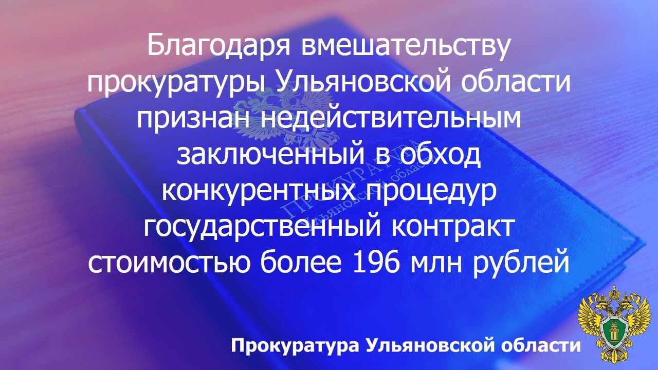Исковые требования прокуратуры Ульяновской области удовлетворены в полном объеме, указанный контракт признан недействительным, с ООО «Холдинг строй проект» определено взыскать полученные бюджетные денежные средства на сумму более 159 млн рублей.