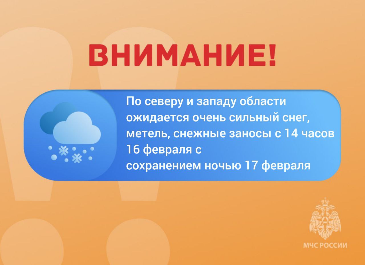 Ожидается очень сильный снег, метель, снежные заносы по северу и западу Ульяновской области с 14 час. 16 февраля с сохранением ночью 17 февраля.