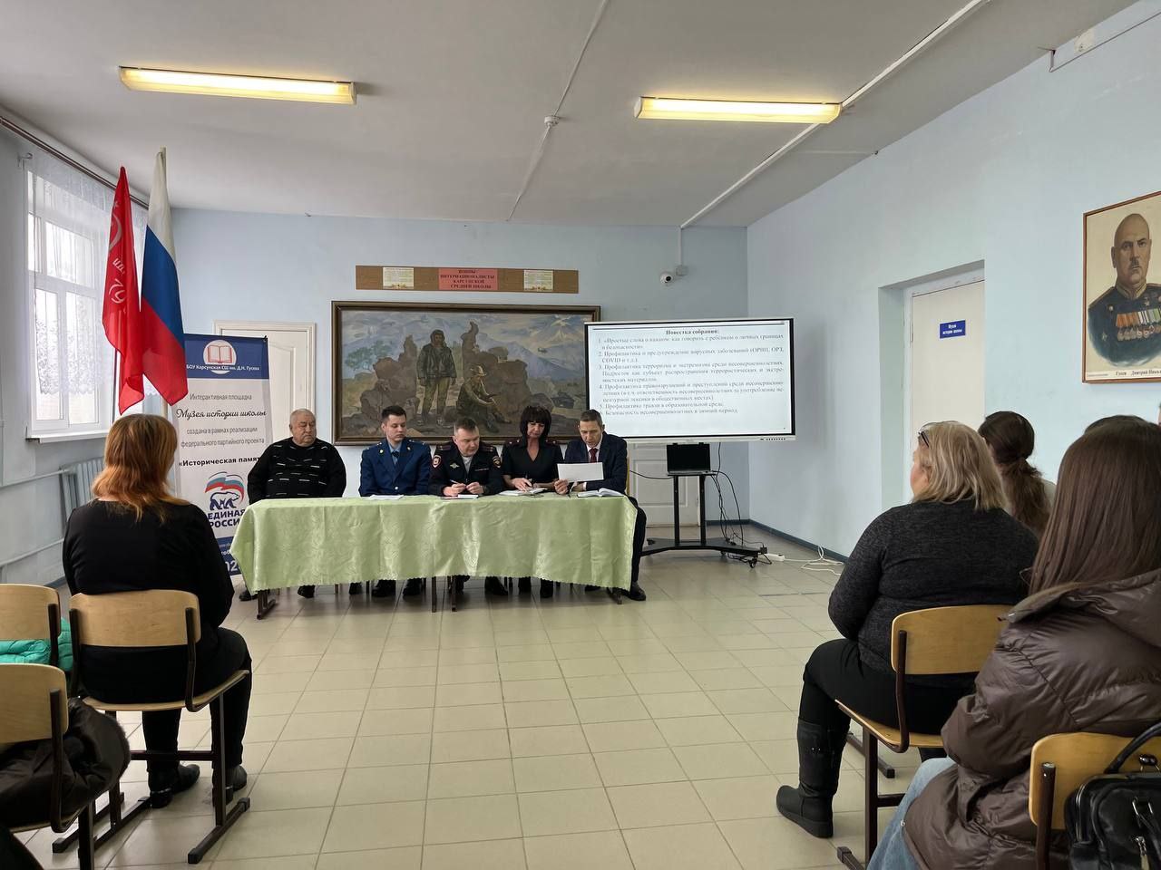 В рамках реализации мероприятий по правовому просвещению и правовому информированию помощник прокурора Карсунского района Катков Д.С. совместно с начальником полиции МО МВД России «Карсунский» встретился с родительским комитетом МБУ "Карсунская СОШ им. Д.Н. Гусева".