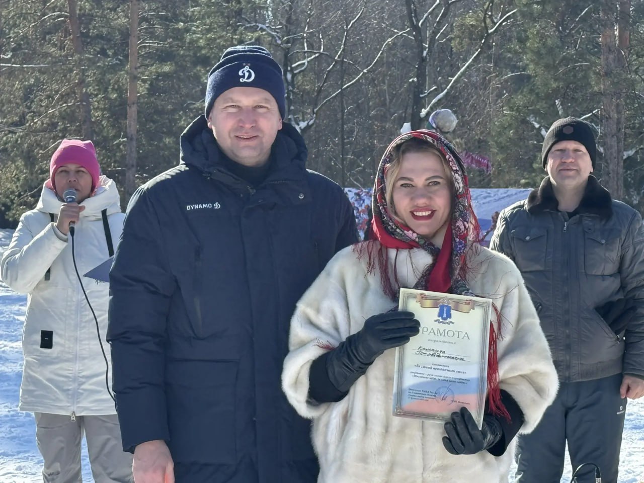 После прохождения всех станций, желающие смогли принять участие в традиционной русской забаве - взобраться на столб. Также все участники спортивно - игровой программы смогли угоститься масленичными блинами.