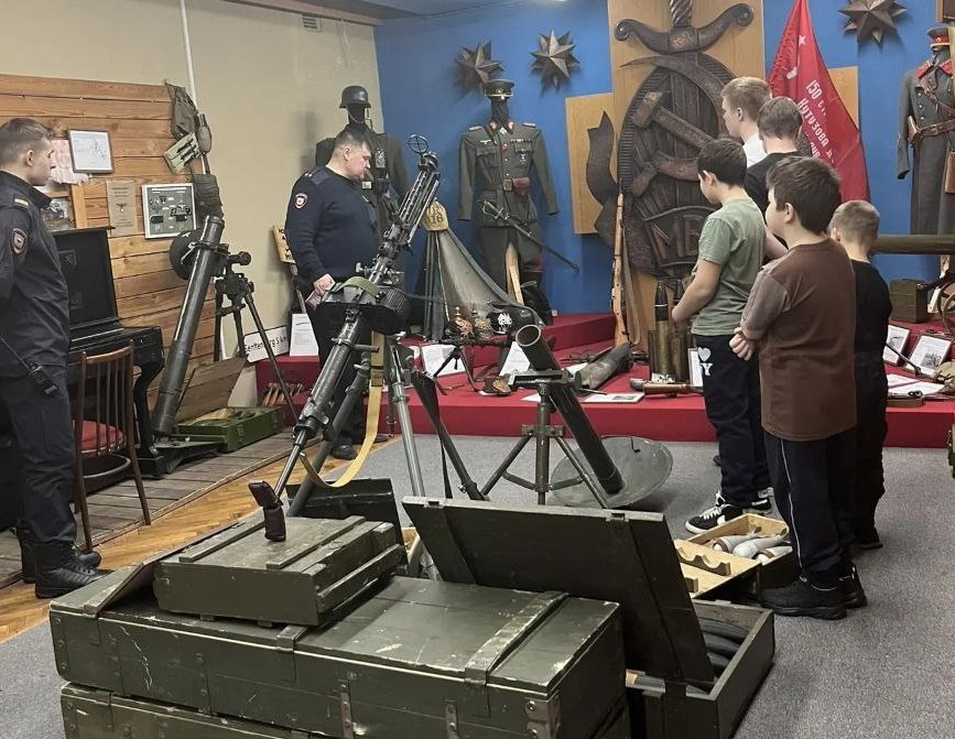 Во время экскурсии несовершеннолетние узнали об основных событиях Великой Отечественной войны, о подвигах героев – земляков, посмотрели форменное обмундирования, знаки отличия военнослужащих, макеты оружия, которое использовали в военные годы.