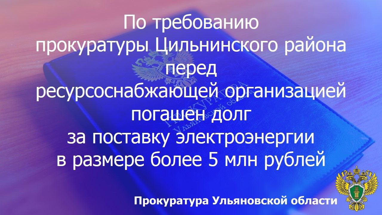 В результате прокурорского вмешательства задолженность за поставленные коммунальные ресурсы погашена в размере более 5 млн рублей.