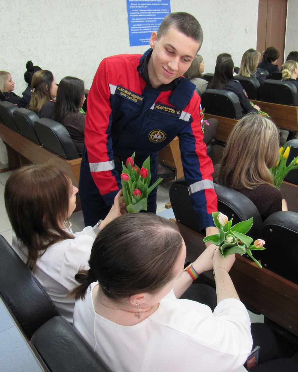 6 марта в рамках акции «8 Марта – каждый дом» по инициативе члена Общественного совета при УМВД России по Ульяновской области, председателя совета Ульяновского Регионального отделения Всероссийской общественной организации «Всероссийский студенческий корпус спасателей» Светослава Новикова добровольцы Корпуса поздравили женщин – сотрудников ОМВД России по Ленинскому району г. Ульяновска с Международным женским днем, пожелали им здоровья, благополучия, успехов в их нелегкой работе.