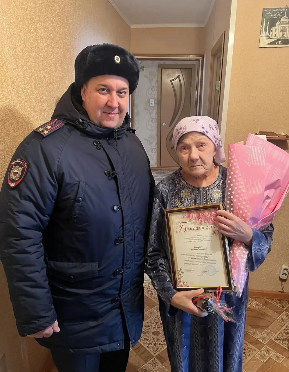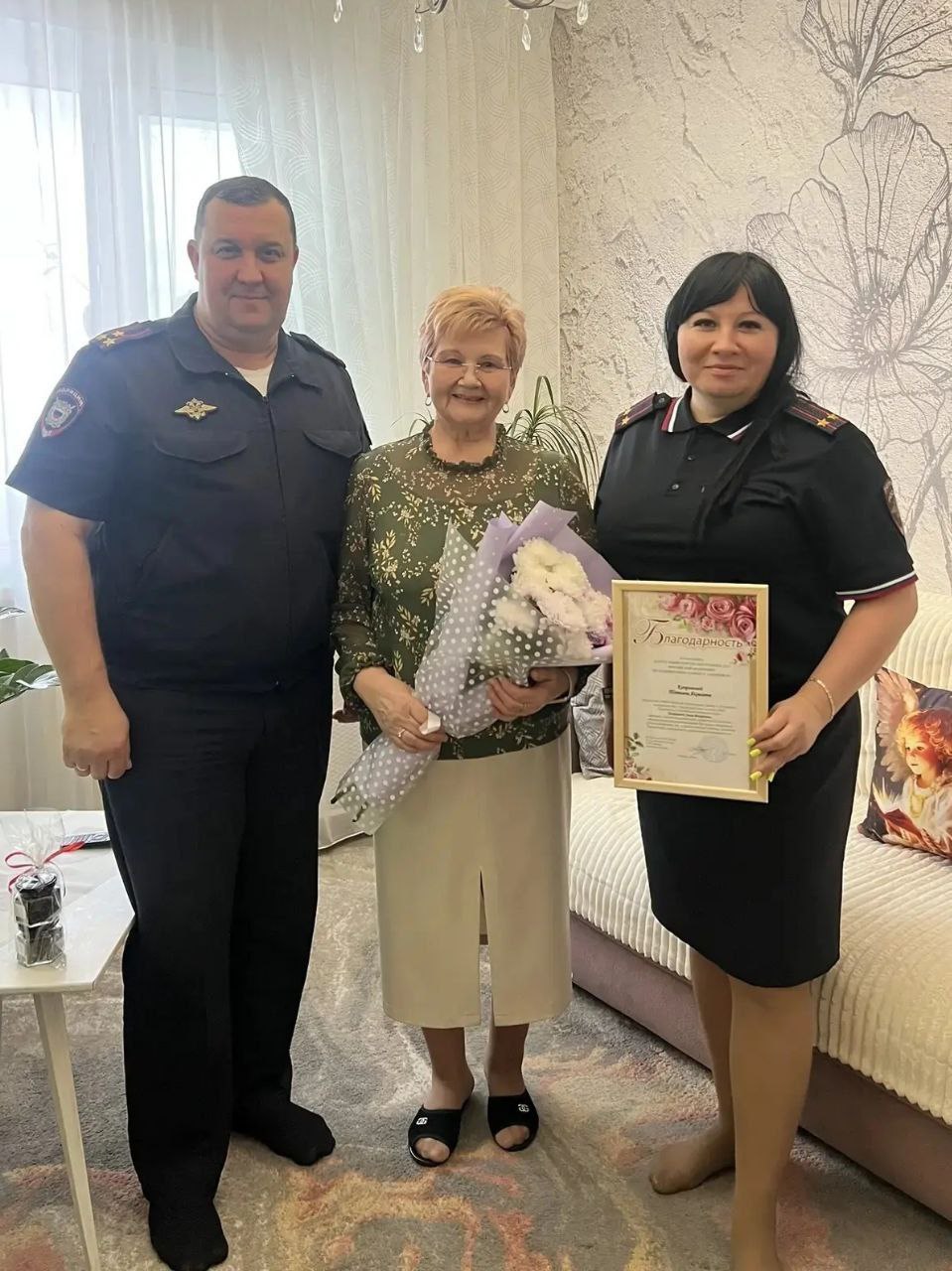 Начальник ОМВД полковник полиции Андрей Руднев и заместитель начальника - начальник ОРЛС ОМВД подполковник полиции Лилия Шайхлисламова поблагодарили женщин за достойное воспитание детей, пожелали им здоровья, семейного благополучия, мирного неба, яркого весеннего солнца и вручили им благодарственные письма, подарки и букеты цветов.