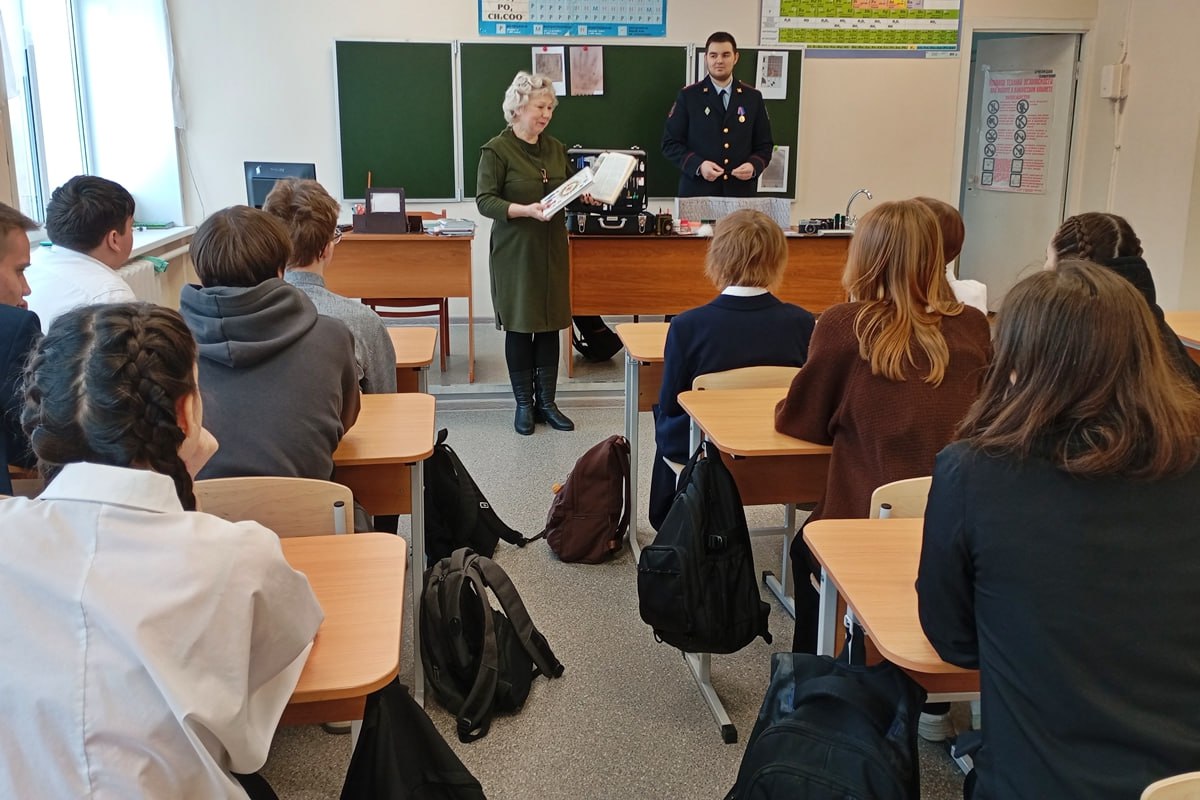 Далее ученики познакомились с содержимом унифицированного криминалистического чемодана, который эксперт берет с собой, выезжая на место происшествия, и узнали, что поменялось в нем за последние десятилетия.