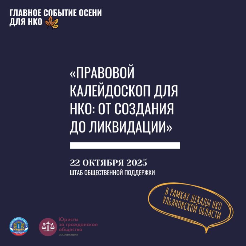 Мероприятие под названием «Правовой калейдоскоп для НКО: от создания до ликвидации» пройдет 22 октября с 10:00 до 15:00 в Штабе общественной поддержки партии «Единая Россия» (ул. Спасская, 8). Регистрации на событие доступна по ссылке-...