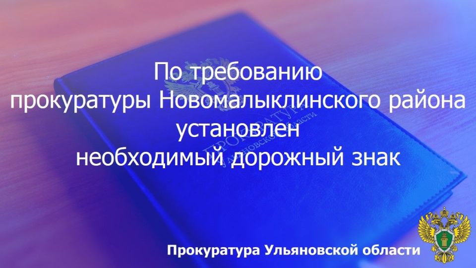 Установлено, что администрация МО «Новомалыклинский район» не принимала мер к обеспечению установки на участке автомобильной дороги перед нерегулируемым перекрестком в районе дома № 16 на улице Почтовой в селе Новая Малыкла дорожного знака...