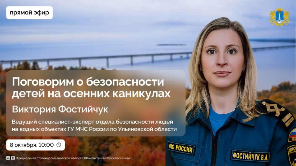 На все вопросы по теме в прямом эфире ЦУР Ульяновской области ответит ведущий специалист-эксперт отдела безопасности людей на водных объектах ГУ МЧС России по Ульяновской области Виктория Фостийчук. Смотрите прямую...