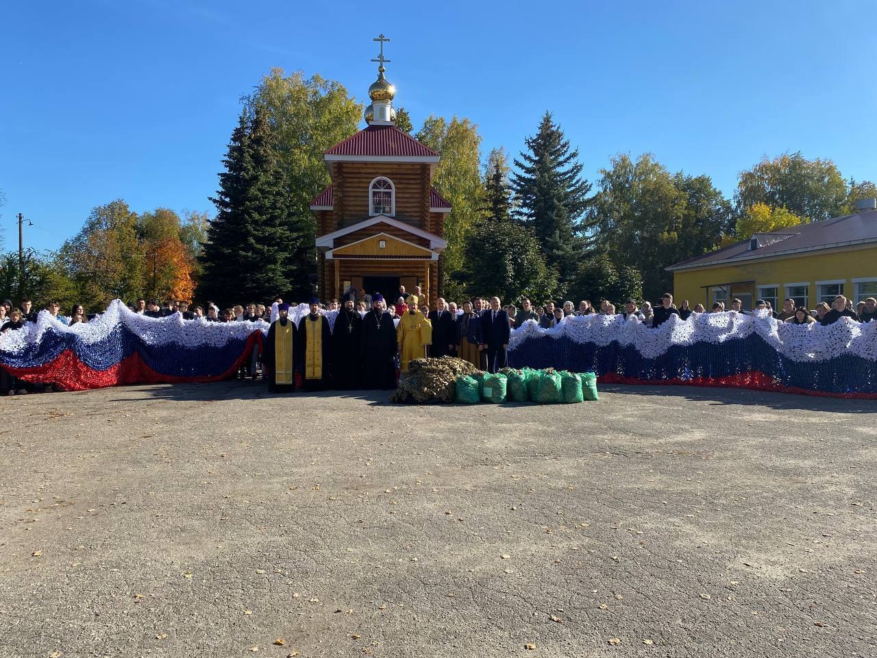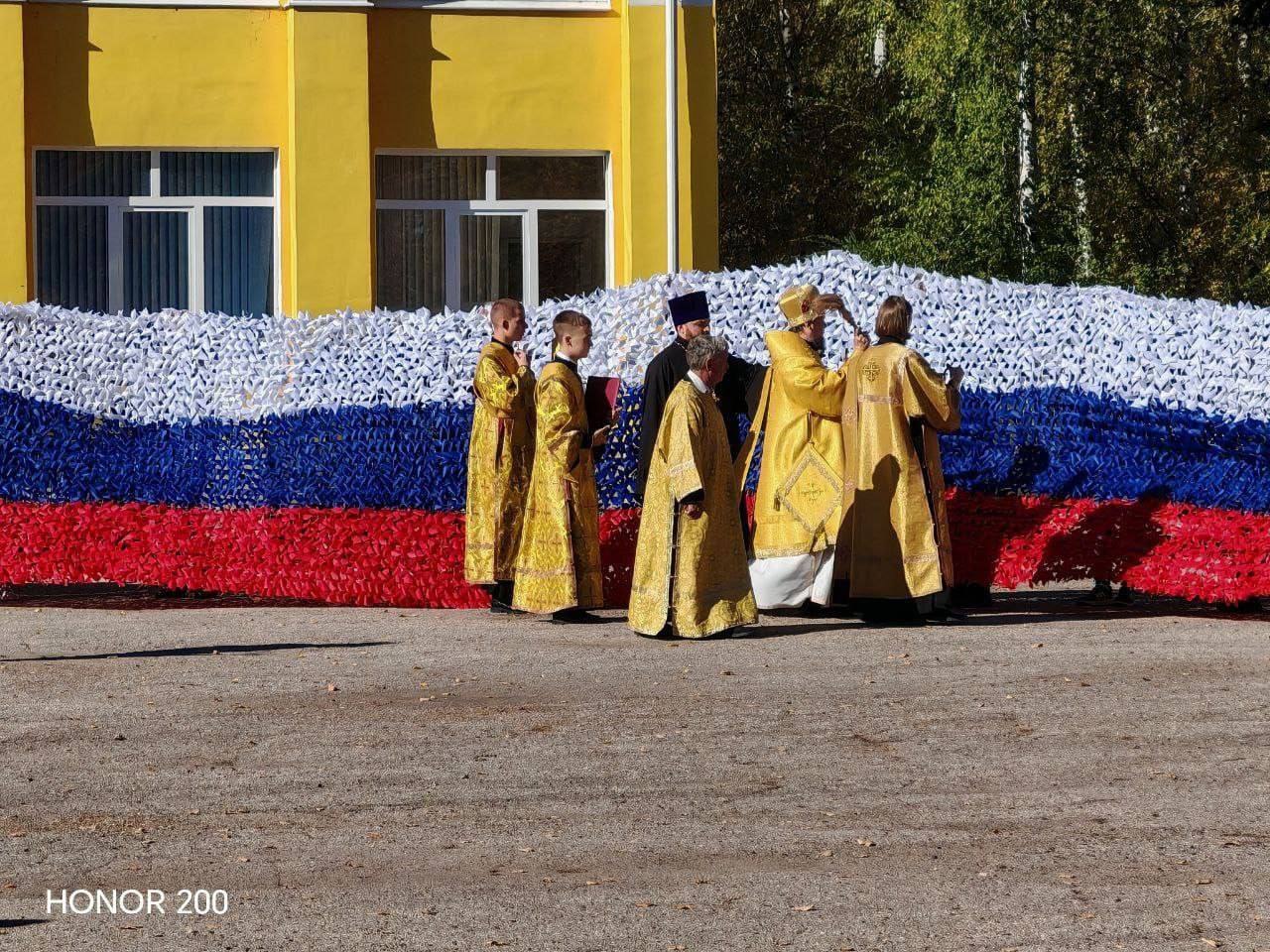 После литургии, посвящённой памяти Сергия Радонежского, освятили флаг, сплетённый студентами и преподавателями УлГАУ.