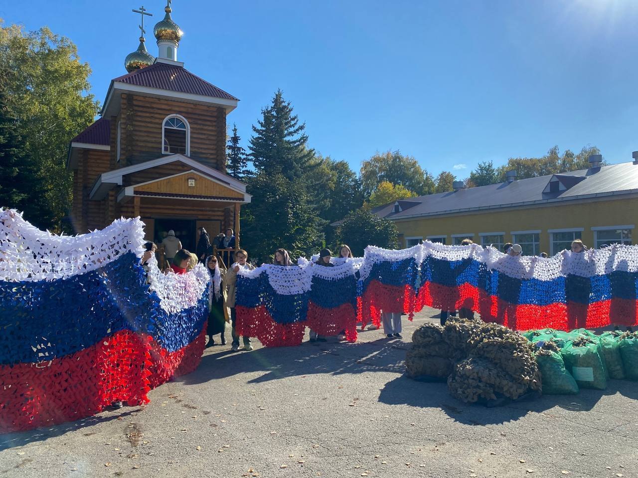 Стометровый флаг, сплетённый в виде маскировочной сети, отправят из УлГАУ на Поклонную гору в Москве.