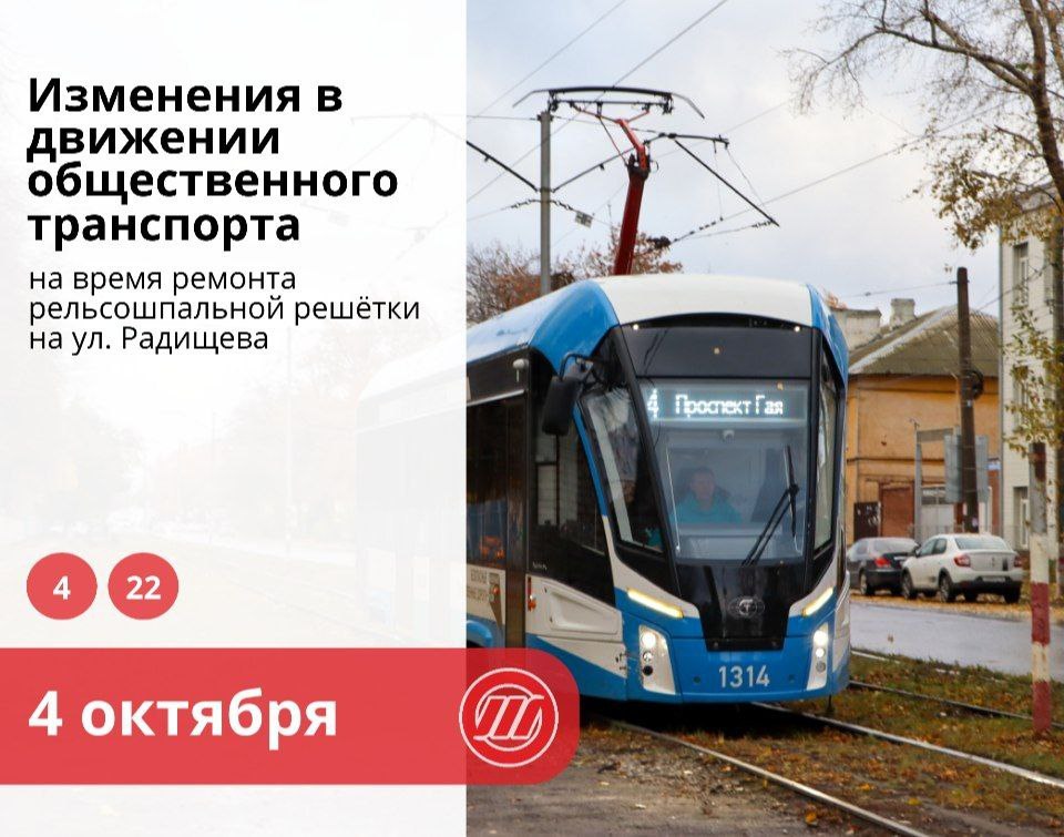 Трамваи №4 и №22 по направлению в Железнодорожный и Засвияжский районы будут следовать через «Телецентр», «Дамбу» — по проспекту Нариманова, ул. Можайского, ул. Марата, ул. Шевченко, ул. Железной Дивизии.