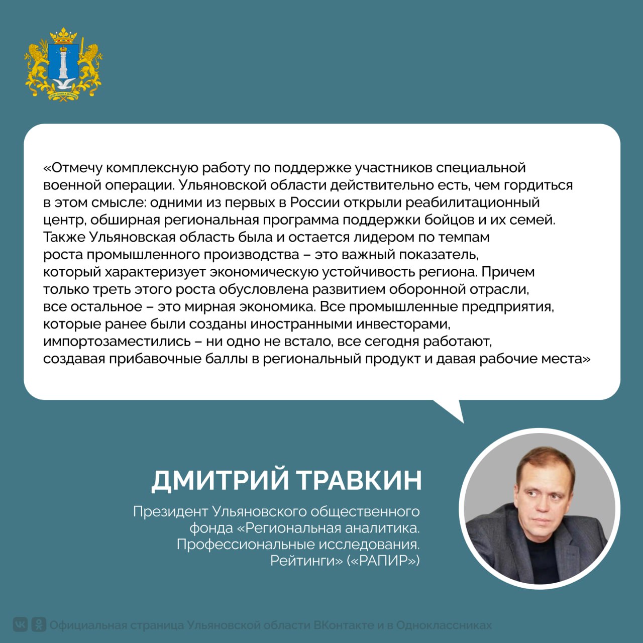Президент ульяновского фонда «РАПИР» Дмитрий Травкин позитивно оценивает достижения Ульяновской области, особо выделяет работу главы региона Алексея Русских в сфере импортозамещения.
