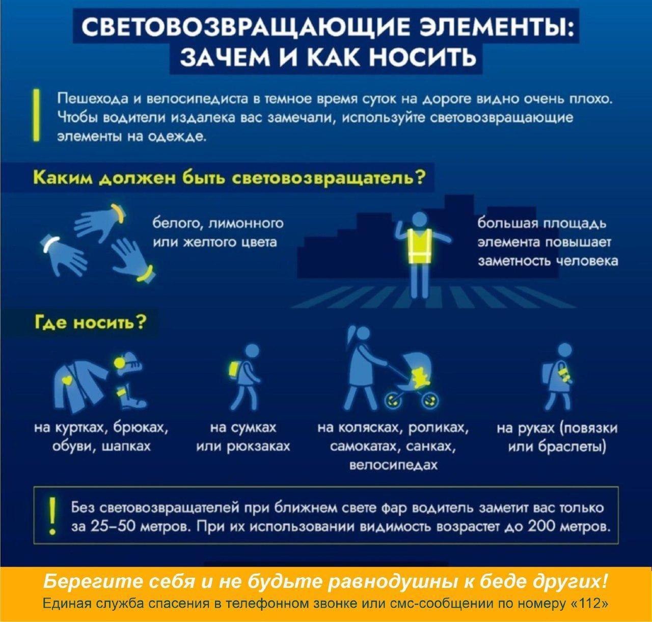 Одежда и аксессуары со светоотражающими элементами привлекут к себе внимание не только в тёмное время суток, яркие оттенки защищающих элементов пешехода или велосипедиста напомнят водителю об особой осторожности во время движения.
