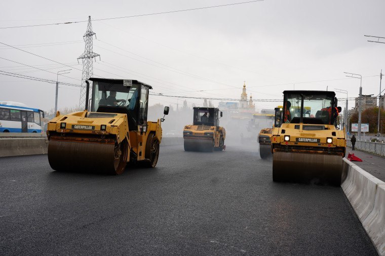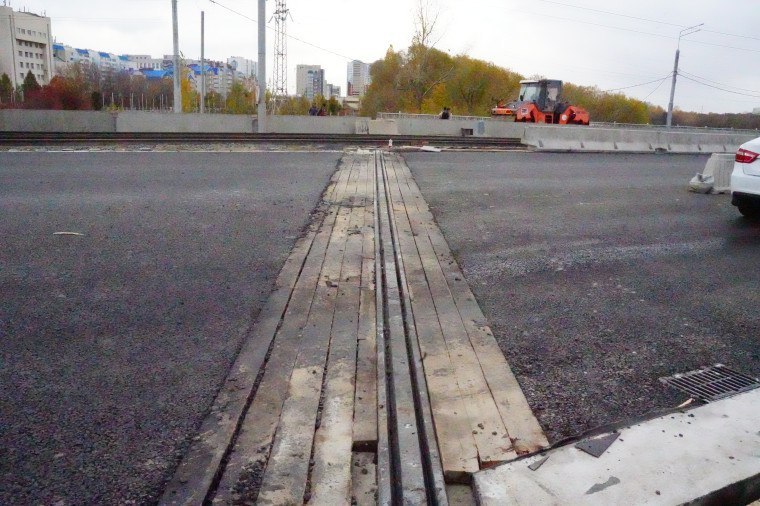 После трёхслойного асфальтирования на переправе предстоит уложить литой асфальтобетон на примыканиях к деформационным швам. Сегодня выполнят подготовку, а завтра — основную укладку материала. После этого литому асфальту нужно не менее шести часов, чтобы застыть.