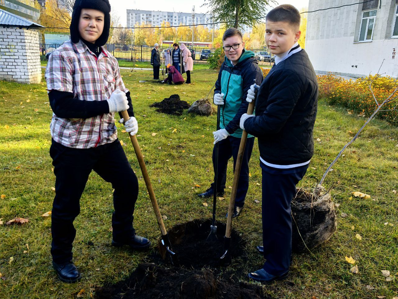 Посадить дерево — просто, но важно! Пусть на территории школы всегда будет зелено, красиво и уютно, а город станет ещё чище, светлее и добрее благодаря каждому новому деревцу, посаженному заботливыми руками жителей.