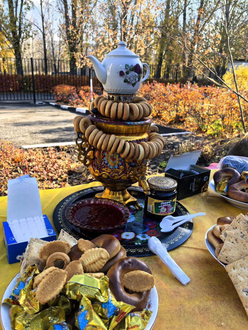 После работы всех ждало чаепитие, а ученики школы подарили гостям музыкальные и театральные номера.