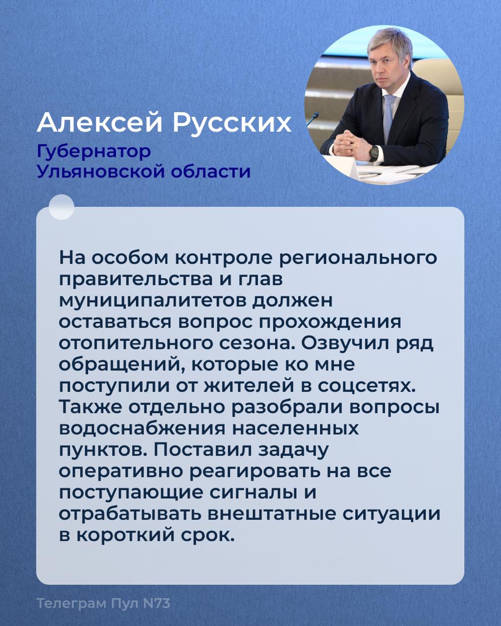 Алексей Русских поручил профильным службам ТЭК и ЖКХ держать вопросы теплоснабжения в Ульяновской области на особом контроле
