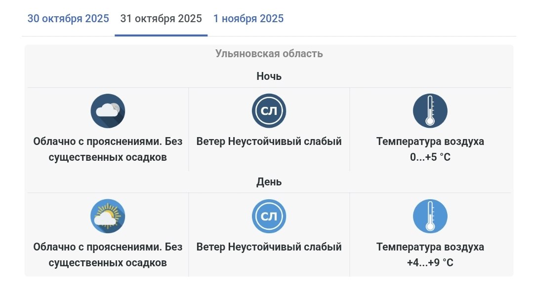 Предупреждение о неблагоприятных условиях погоды на территории Ульяновской области. Ночью и в первой половине дня 31 октября местами по Ульяновской области ожидается туман с видимостью 500 метров и менее. Ульяновская область в MAX// Ульяновская область