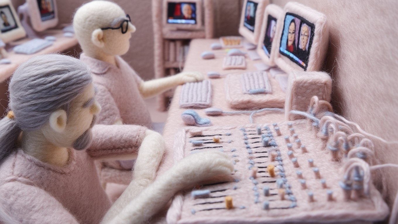 Мы подготовили особые картинки, где привычные кадры нашей работы превращаются в «вязаные» сюжеты — как напоминание о том, что за каждым эфиром стоит живой труд, тепло и душа.