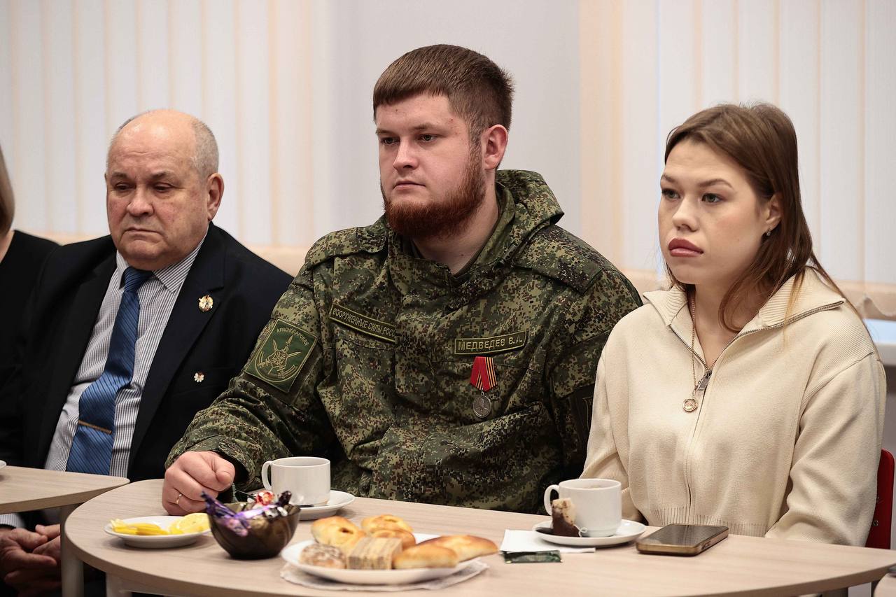 Провел встречу с ветеранами боевых действий, родными героев, волонтерами. Обсудили адаптацию и трудоустройство защитников, помощь семьям, сбор вещей и оборудования для фронта, сохранение памяти о подвигах бойцов. Еще одну встречу провел в режиме открытого микрофона: обсудили с жителями развитие комфортной инфраструктуры в районе, включая капремонт школ, строительство ФАПов, обновление дорог, переселение из аварийного жилья.