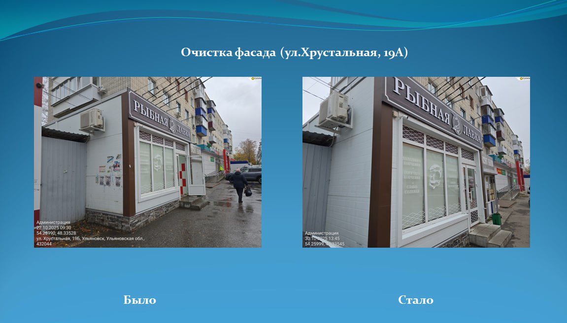 За уходящий месяц собственники объектов бизнеса привели в порядок фасады зданий по следующим адресам: проспект Гая, 37 и 84, улицы Хрустальная, 19А, 28, 36А и 38, Локомотивная, 207, 40-летия Октября, 25В