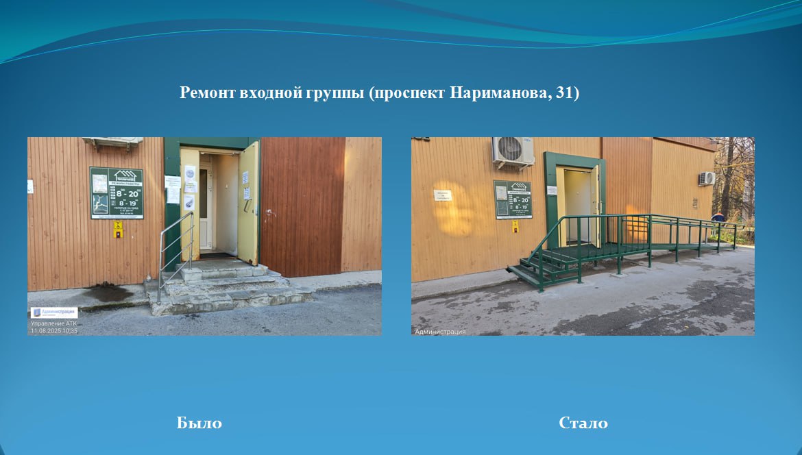 Владельцы помещений на проспекте Ленинского Комсомола, 37, проспекте Гая, 17, проспекте Нариманова, 31 и в переулке Молочном, 1А отремонтировали входные группы, а у строящегося здания в 4-м переулке Нариманова, 28 была установлена пешеходная галерея