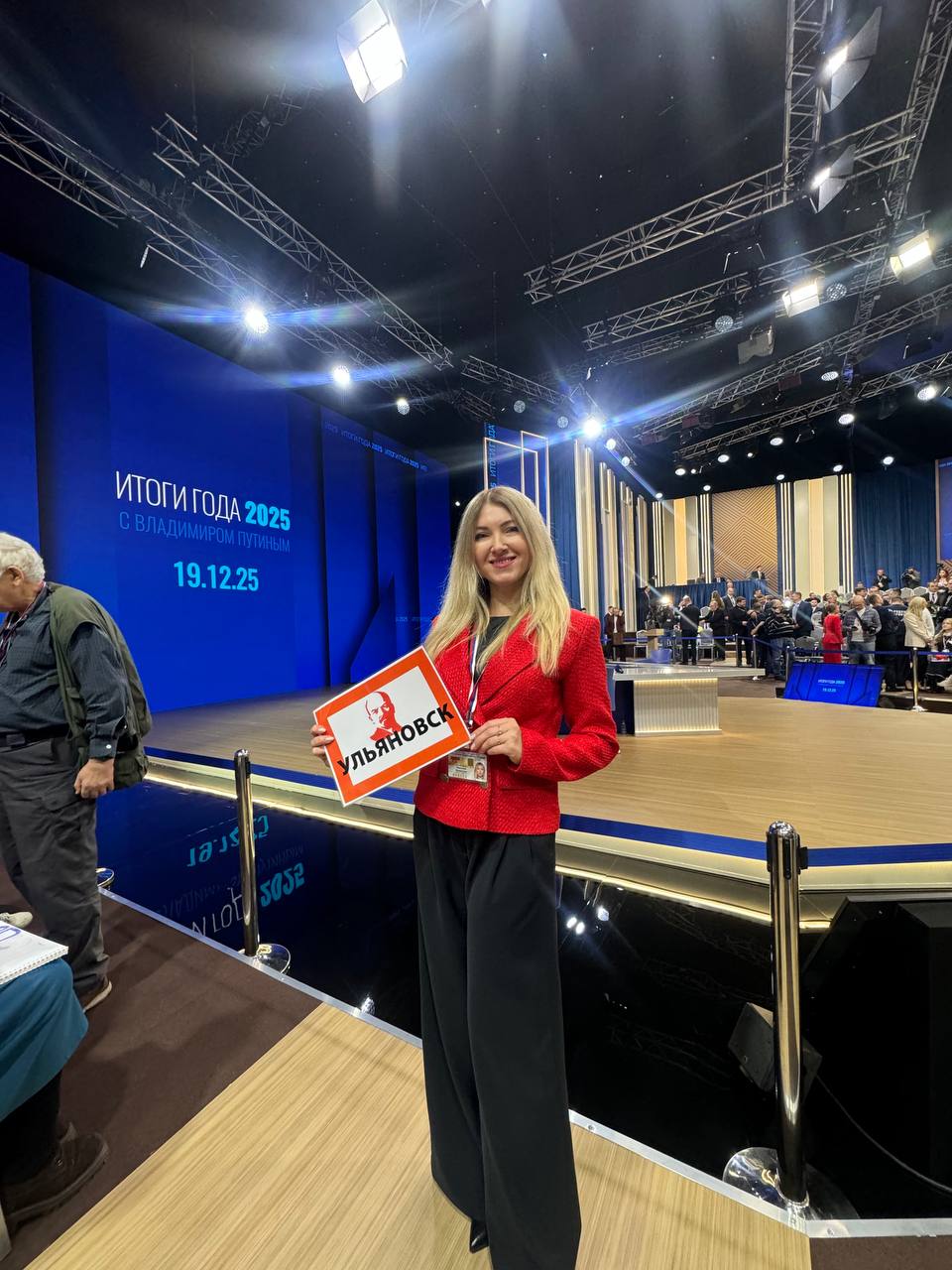 Пока мы рассматривали фото и видео из банкетного зала Гостиного двора, Валентина уже примчалась в зал, где состоится пресс-конференция с президентом и заняла свое рабочее место.