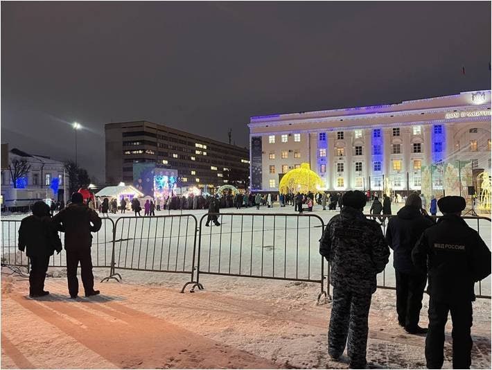 По периметру Соборной площади выставят металлические ограждения. В день открытия ёлки и в новогоднюю ночь подъезды к площади перекроют грузовиками.