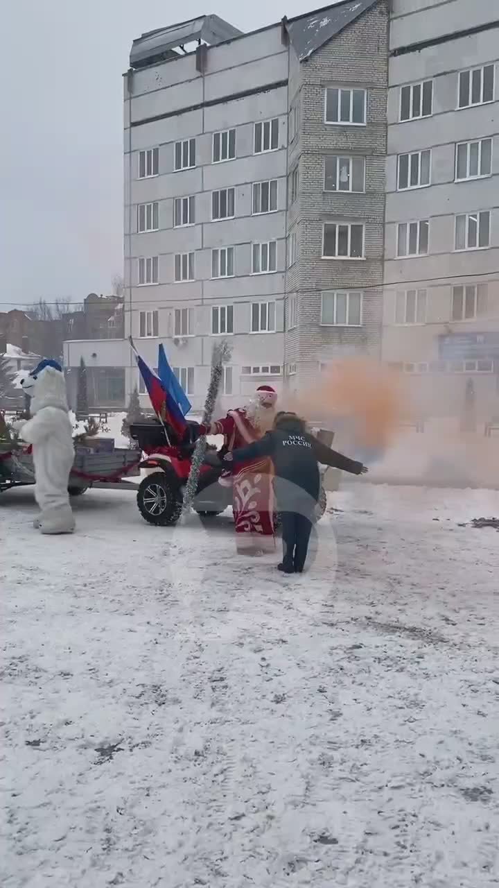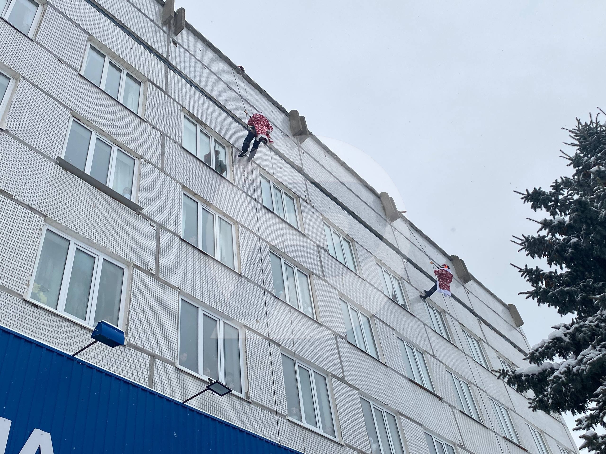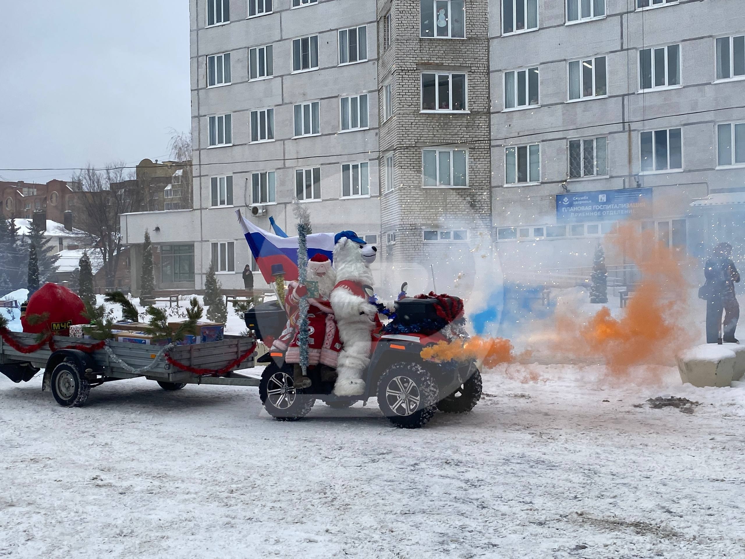 Дед Мороз со Снегурочкой привезли подарки на квадроциклах, а волшебники с альпинистским снаряжением спустились к окнам и поздравили детей с наступающим праздником.