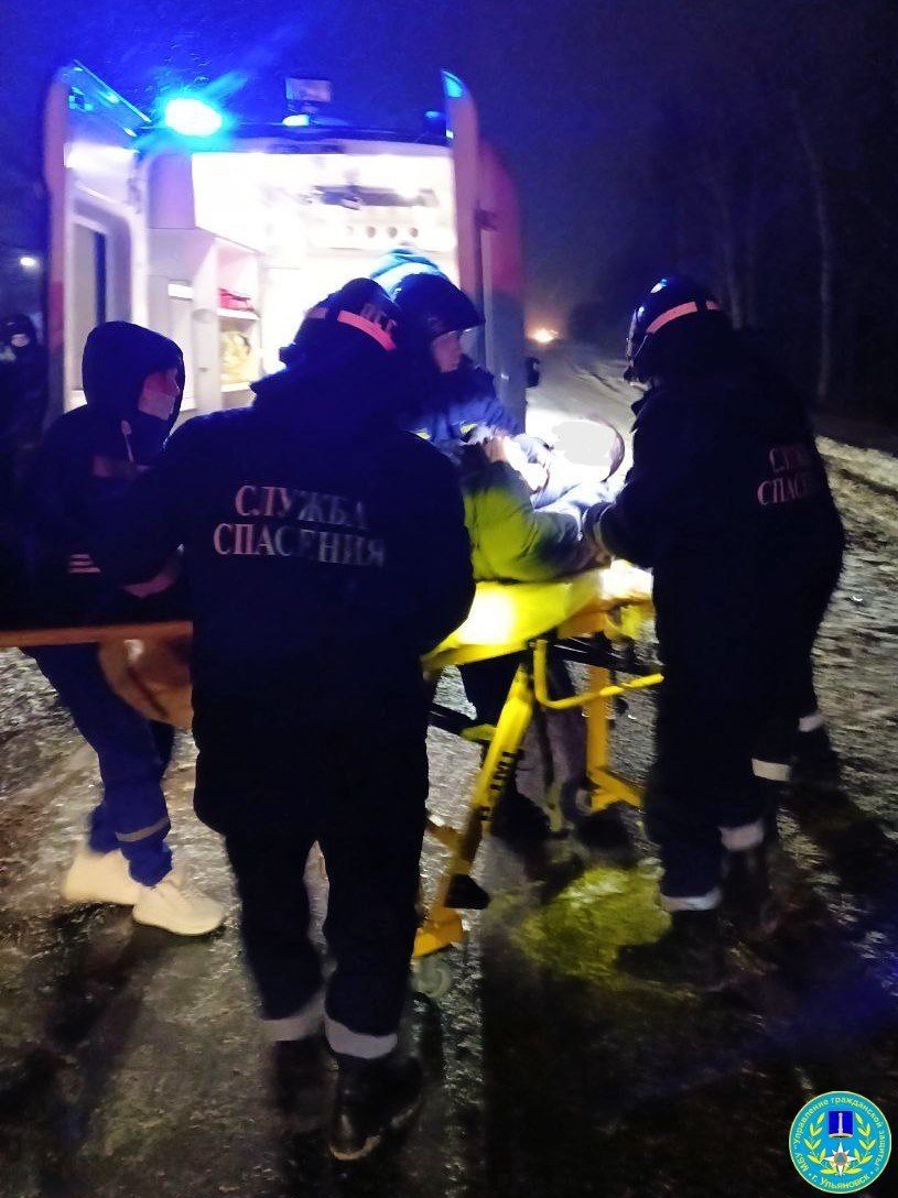 Спасатели оказали помощь в транспортировке пострадавших в машину.